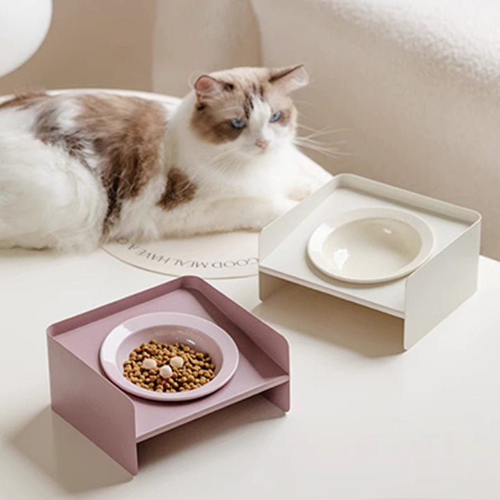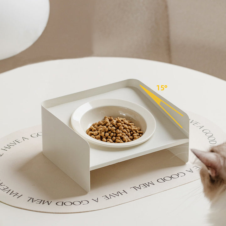 Cozy Halo Cat Bowl - Tilted Ceramic & Iron-Frame Feeder