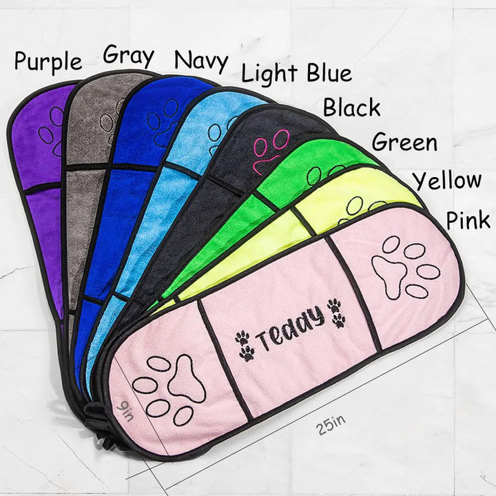 Personalized Pet Towel - This custom pet towel is embroidered with your pet's name and features an adorable paw print, adding a personal touch to your furry friend's grooming routine.