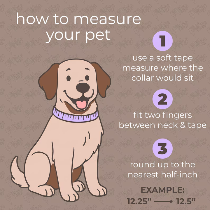 We recommend measuring your pet’s neck circumference or the length of their current collar (excluding one buckle) to ensure a perfect fit.