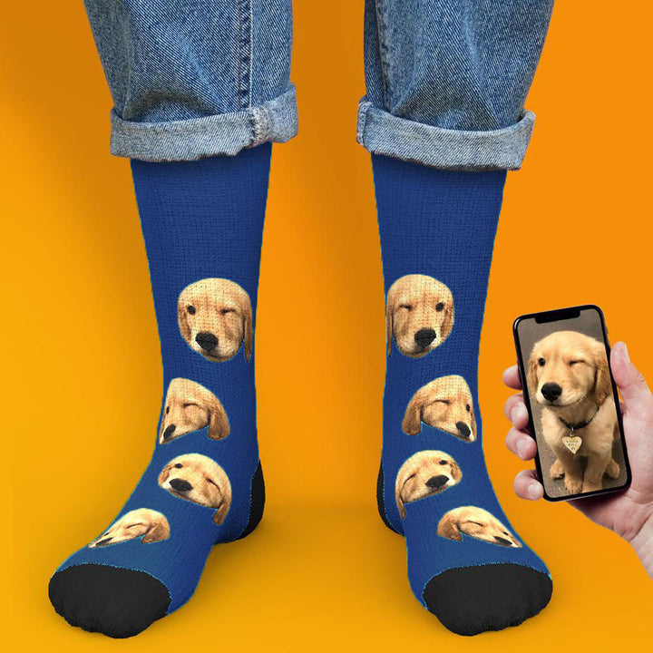 Make every step a little more personal with our Custom Photo Socks! Simply upload your favorite picture — your pet, your partner, your best friend, or even your own face — and we’ll turn it into a fun, high-quality pair of socks that’s sure to stand out.