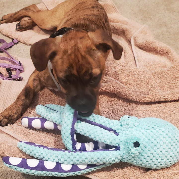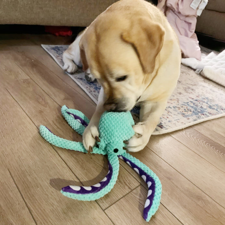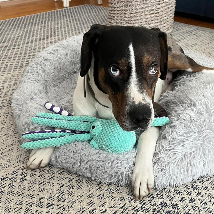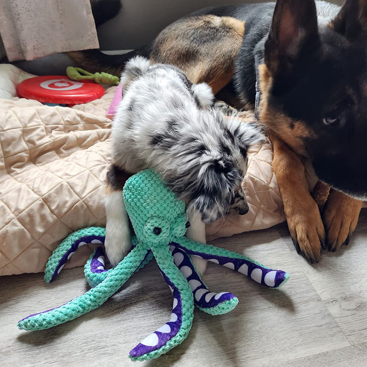 This dog toys has a squeaker in the hend, squeaks when dogs chewing can sustian playing time, The dog chew toys has realistic eyses that can arouse the dogs desire to attack, reduce the dogs loneliness, reduce the frequency of their biting and barking, and release the dog's emotions.Simultaneously, the puppy toys are perfect as a toss, chew, fetch and pull toy for Chihuahuas, Corgis, Pomeranians and Poodles